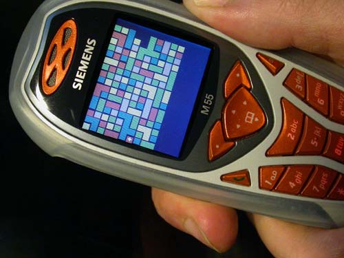 I recommend you hold the mobile phone like shown in the picture at the top of this page. You can then control the cursor with the navigation buttons. Jump into the menu with the power-off-button. All other buttons trigger a 'click' on the gameboard!